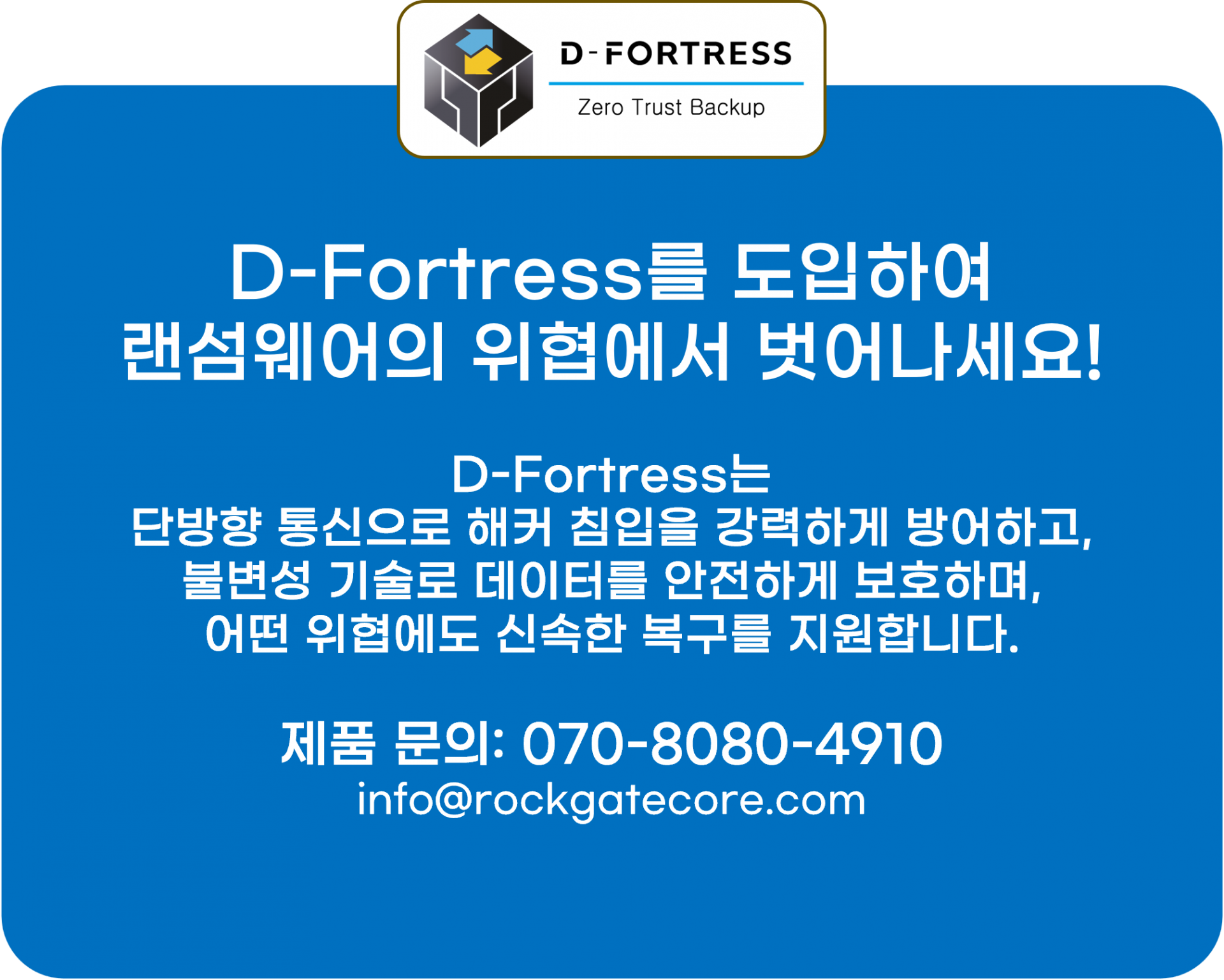 D-Fortress 도입을 통해 랜섬웨어 위협으로부터 완전히 자유로운 백업 인프라를 구축하세요!
