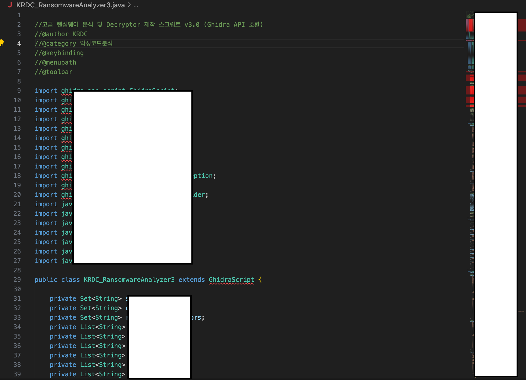 약 1년간의 연구 끝에, 3,000여 라인의 Java 스크립트를 개발하여 리버싱 프로세스를 획기적으로 단축했습니다. 이 스크립트를 통해 10분 이내에 랜섬웨어의 핵심 데이터를 추출할 수 있습니다.