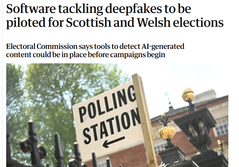 - 딥페이크 대응 파일럿(영국 선거 관련) 보도(The Guardian)
